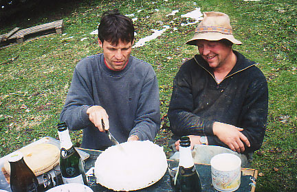 Bob's Menü I: Scampi-Kanapées gemischter Salat Kartoffelgratin Lammkoteletts Birnen in Wein eingelegt und karamelisiert