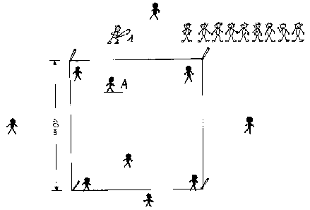 beginnt mit einem Wurf des Spielers A. Er wirft den Ball in einem